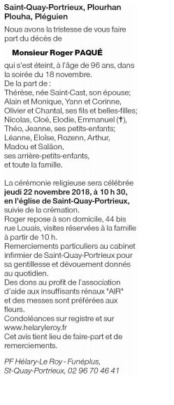 Décédé à Saint-Brieuc (22000, France) le dimanche 18 novembre 2018 à l'âge de 96 ans