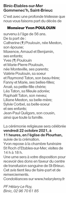 Décédé à Goudelin (22290, France) le vendredi 15 octobre 2021 à l'âge de 56 ans