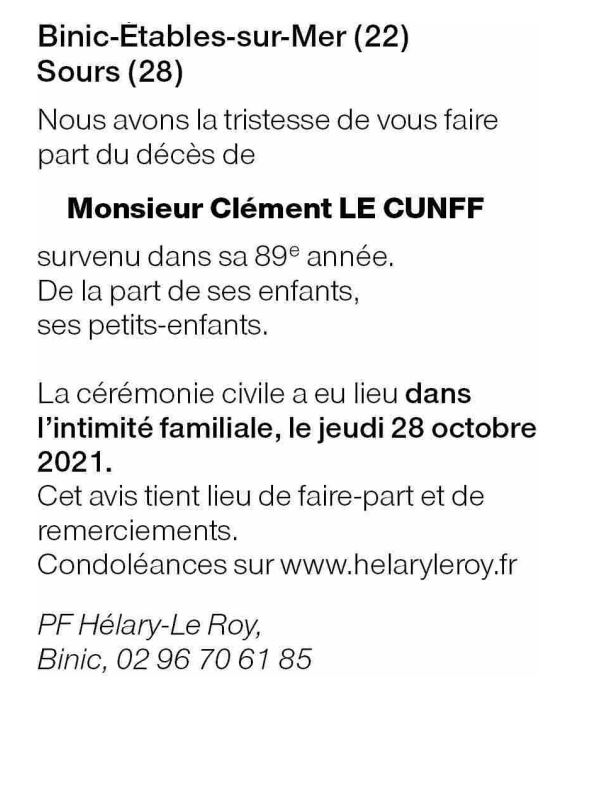 Décédé à Binic (22520, France) le vendredi 22 octobre 2021 à l'âge de 88 ans