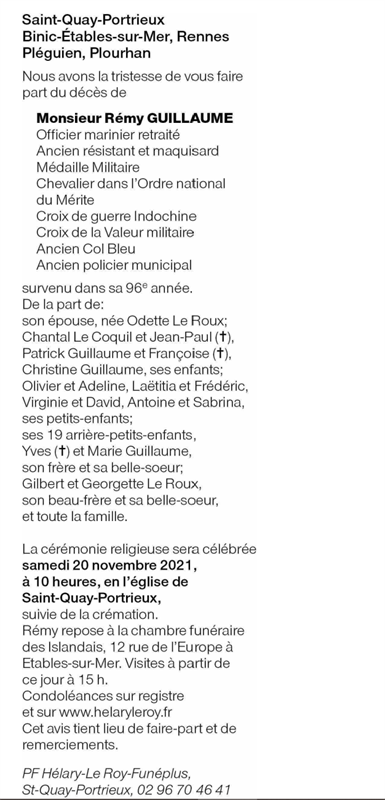 Décédé à « Localité inconnue »  (France) le lundi 15 novembre 2021 à l'âge de 95 ans