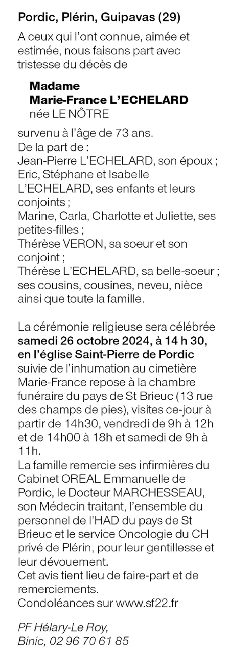 Madame Marie-France L'ECHELARD née LE NÔTRE