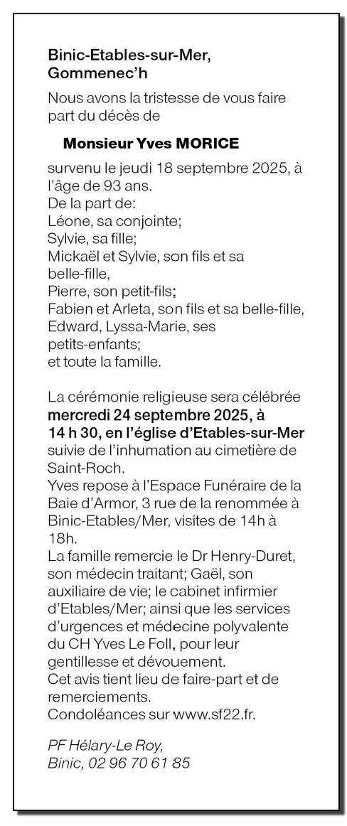 Décédé à Saint-Brieuc (22000, France) le jeudi 18 septembre 2025 à l'âge de 93 ans