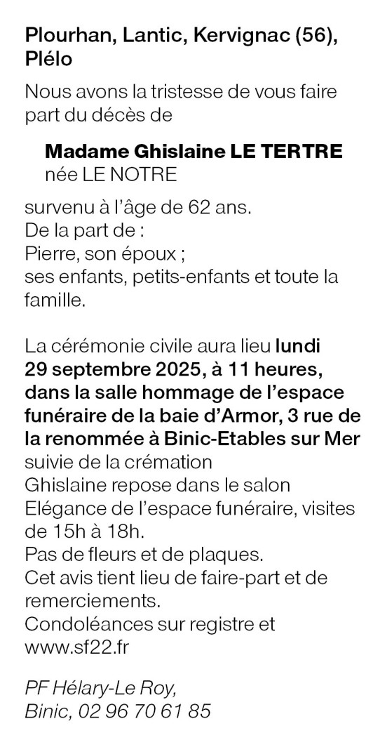 Madame Ghislaine LE TERTRE née LE NOTRE