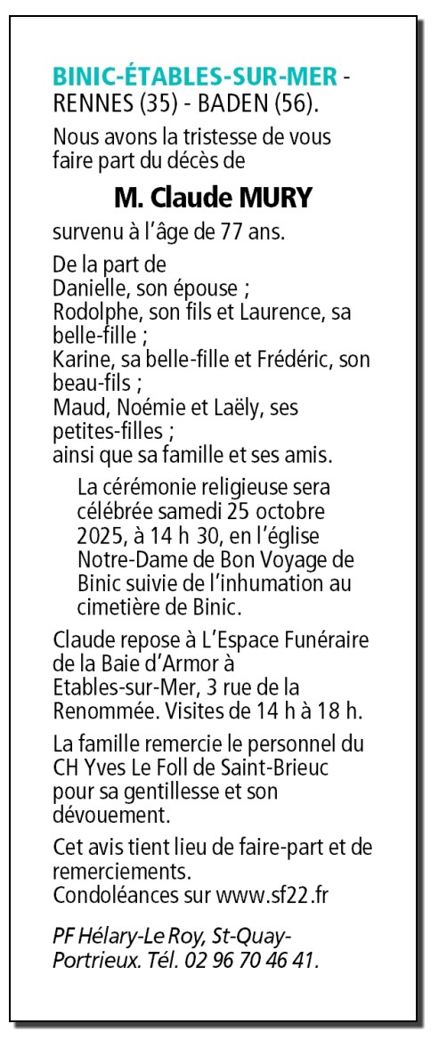 Décédé à Saint-Brieuc (22000, France) le dimanche 19 octobre 2025 à l'âge de 77 ans