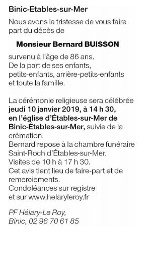 Décédé à Plérin (22190, France) le mardi 8 janvier 2019 à l'âge de 86 ans
