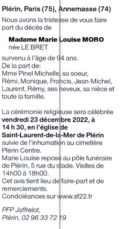 Veuve de Monsieur Jean Louis Yves Marie MORO