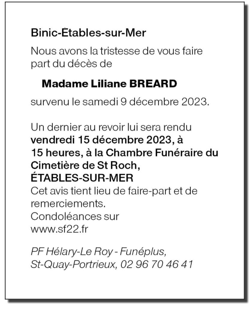 Décédée à Saint-Brieuc (22000, France) le samedi 9 décembre 2023 à l'âge de 75 ans