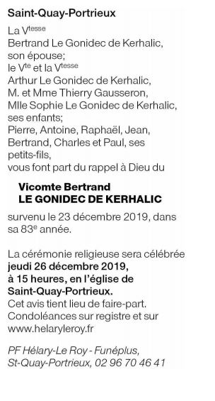 Décédé à Saint-Quay-Portrieux (22410, France) le lundi 23 décembre 2019 à l'âge de 82 ans
