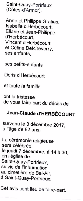 Décédé à Saint-Brieuc (22000, France) le dimanche 3 décembre 2017 à l'âge de 82 ans