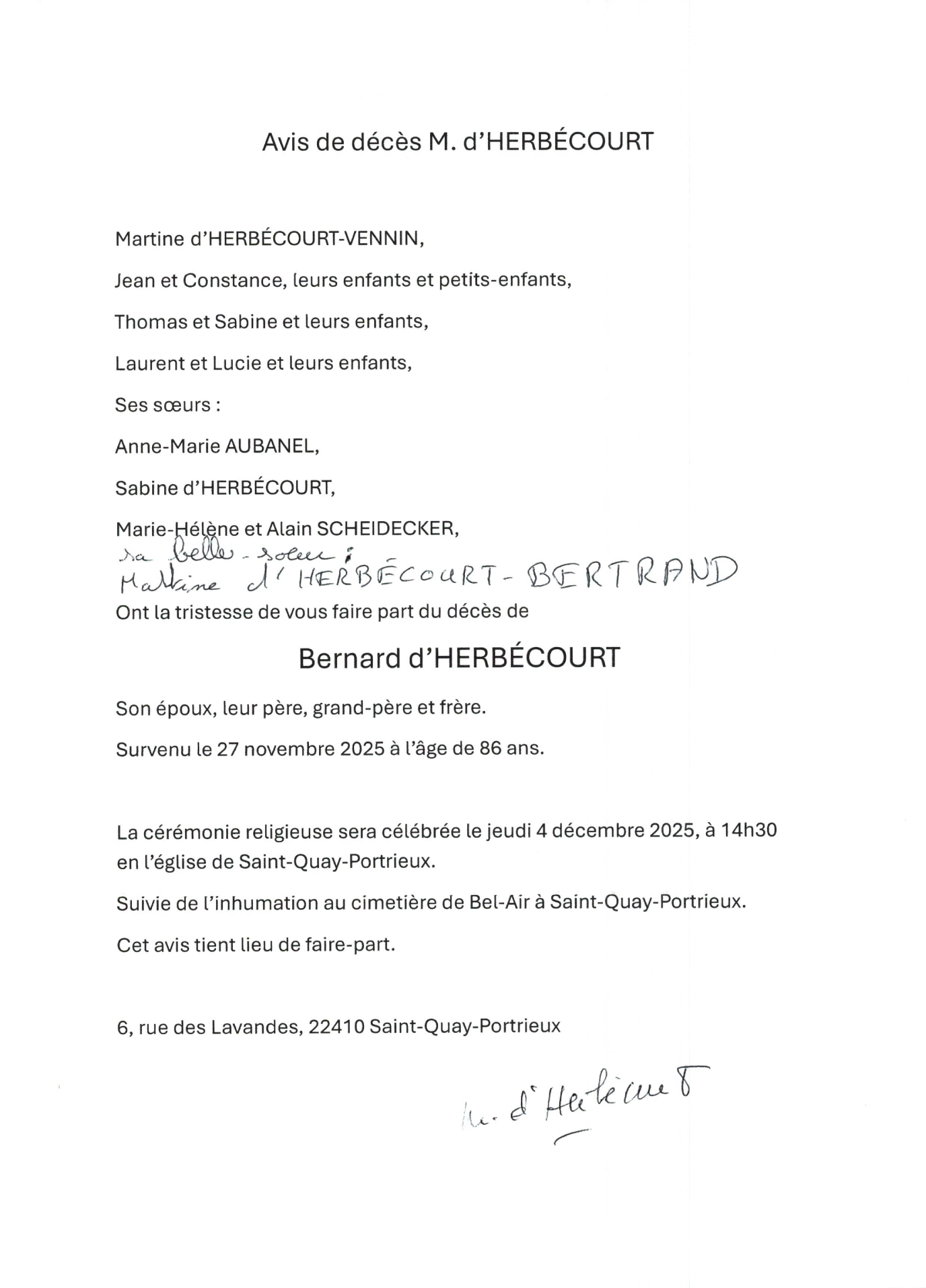 Décédé à Saint-Brieuc (22000, France) le jeudi 27 novembre 2025 à l'âge de 86 ans