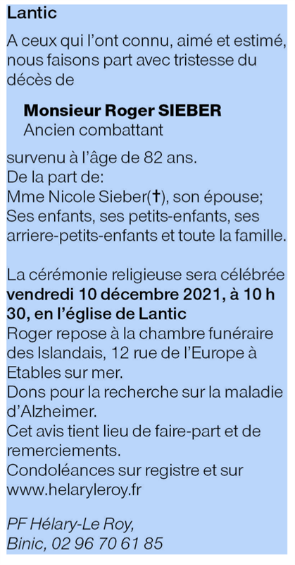 Décédé à Plouagat (22170, France) le dimanche 5 décembre 2021 à l'âge de 82 ans