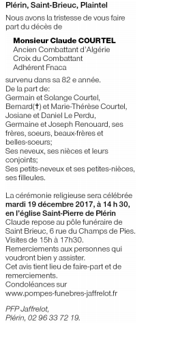 Décédé à Saint-Brieuc (22000, France) le dimanche 17 décembre 2017 à l'âge de 81 ans