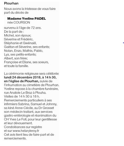 Madame Yveline PADEL née COURSON