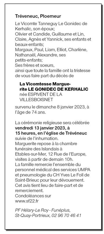 Madame Marguerite LE GONIDEC DE KERHALIC née ESPIVENT DE LA VILLESBOISNET