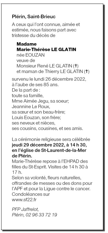 Madame Marie-Thérèse LE GLATIN née EOUZAN