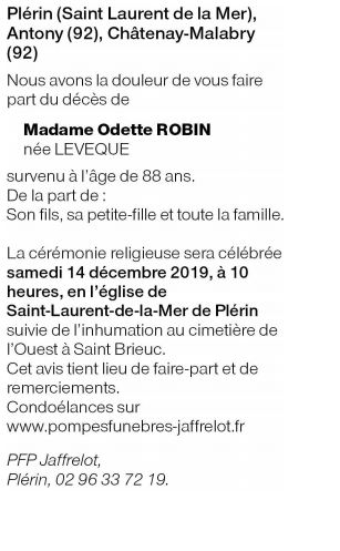 Madame Odette ROBIN née Léveque