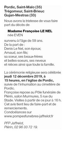 Décédée à Plérin (22190, France) le lundi 9 décembre 2019 à l'âge de 59 ans