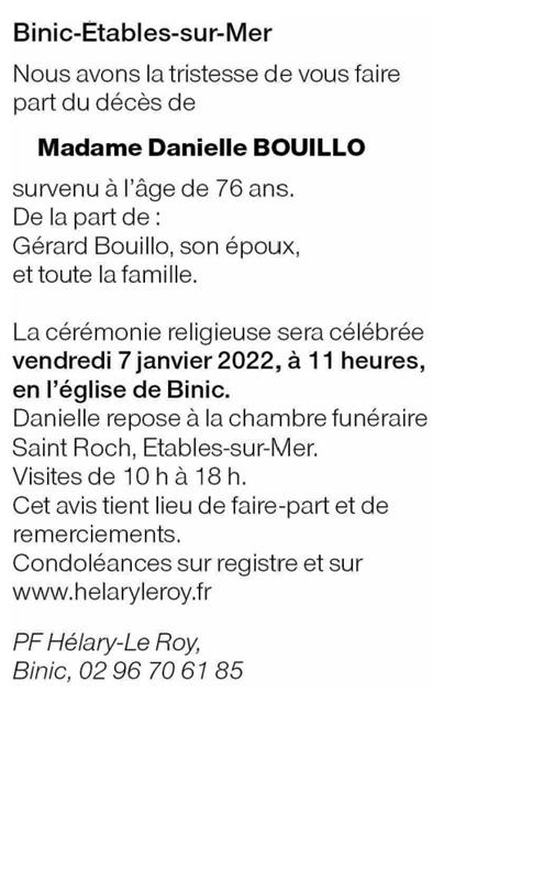 Décédée à Plérin (22190, France) le samedi 1 janvier 2022 à l'âge de 76 ans