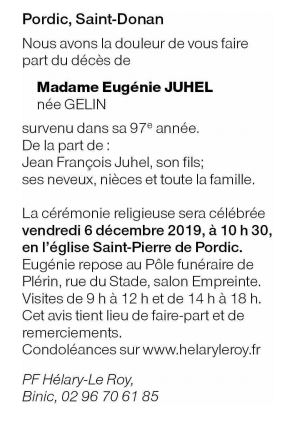 Décédée à Pabu (22200, France) le mardi 3 décembre 2019 à l'âge de 96 ans