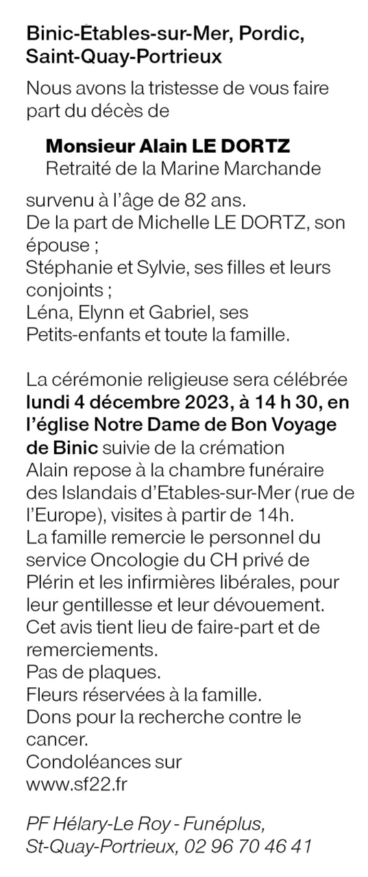 Décédé à Plérin (22190, France) le jeudi 30 novembre 2023 à l'âge de 82 ans