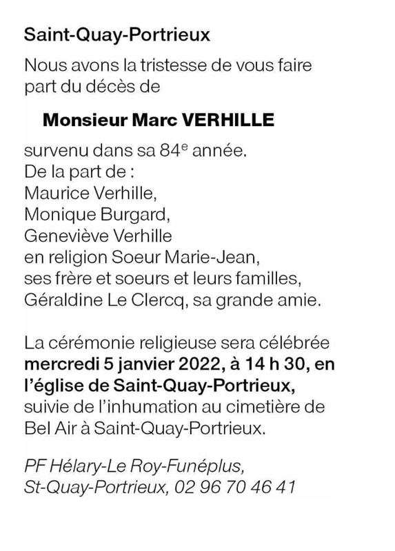 Décédé à Binic-Étables-sur-Mer (22680, France) le jeudi 30 décembre 2021 à l'âge de 83 ans