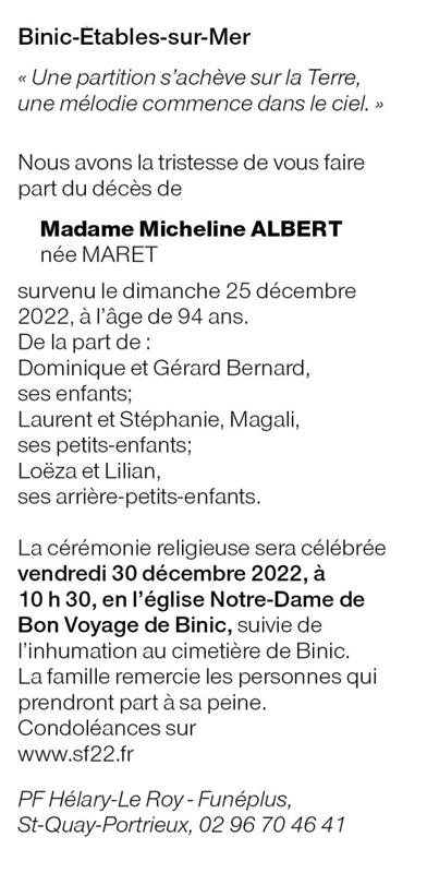 Madame Micheline ALBERT née MARET