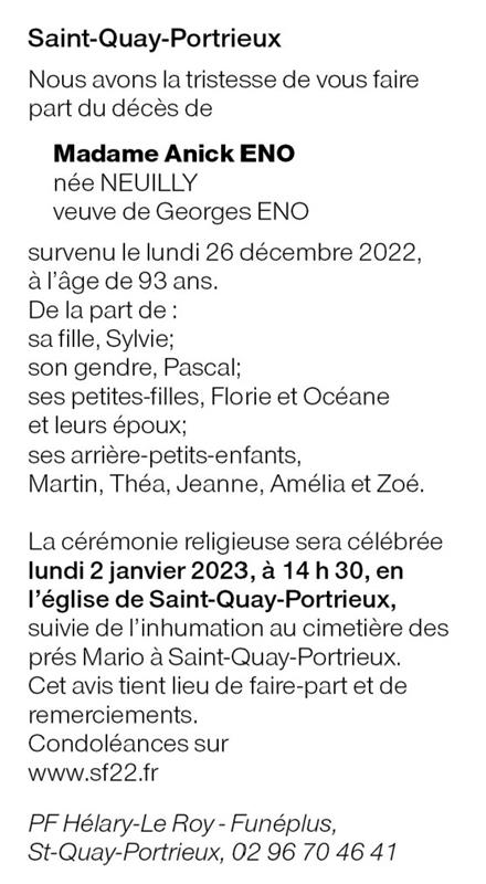 Décédée à Paris (75012, France) le lundi 26 décembre 2022 à l'âge de 93 ans