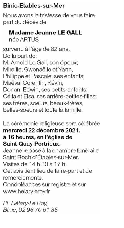 Madame Jeanne LE GALL née ARTUS