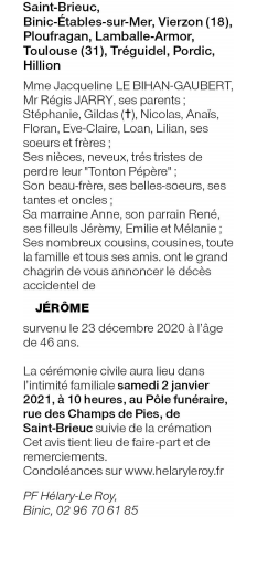 Décédé à Nantes (44000, France) le mercredi 23 décembre 2020 à l'âge de 46 ans