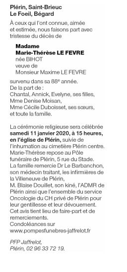 Madame Marie-Thérèse LE FÈVRE née BIHOT